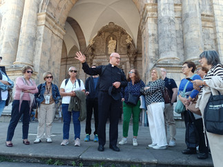 Empezamos el viaje con una parada en Azpeitia para visitar la Iglesia de San Ignacio de Loyola, y me encantó escuchar las explicaciones de nuestro párroco, don Ignacio, sobre la historia y el significado de aquella construcción.